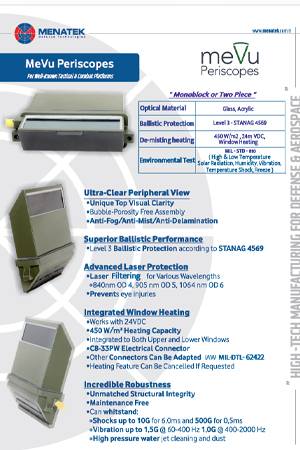 Mono-Block glass body of M Series combined with advanced adhesive technology, provides unmatched structural integrity and maintenance-free nature. MeVu - M series periscopes can withstand: