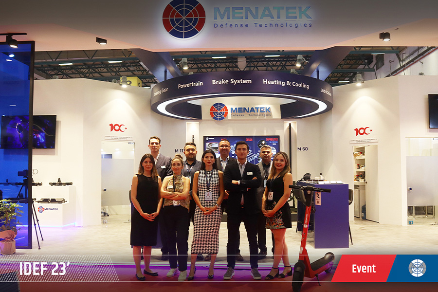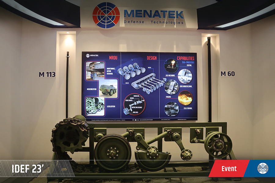 Menatek promoted its specials products such as Mevu Periscopes, Naz Bearings, Custom Design Torsion Bar and its some important subsystem components such as shock absorber, carrier output, track adjuster, idler arm, suspension support arm and transfer case all together on running gear.